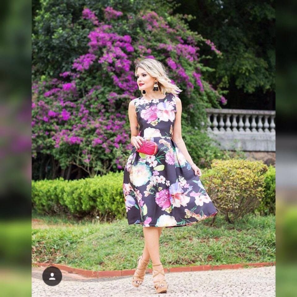 Vestido estampa floral azul e branco Linda de Morrer, 459,00