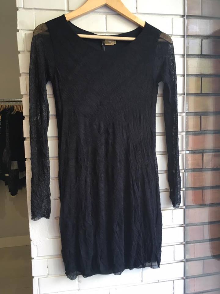 Vertido preto em tule forrado manga longa Cleo Milani, 329,00